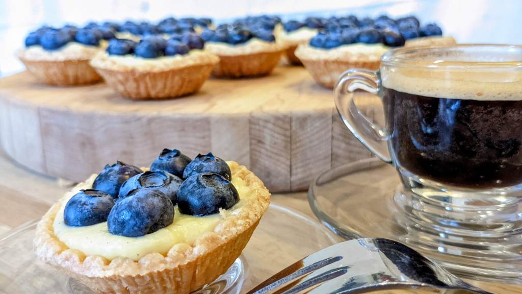 - Fill the pastry dough with pastry cream and decorate it with fresh blueberries.