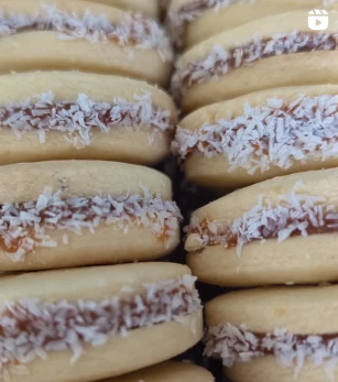 - Spread milk jam close into a sandwich cookie and roll in ground coconut.