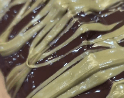 - Divide the batter into thirds: mix one-third with chocolate paste and another third with pistachio puree
