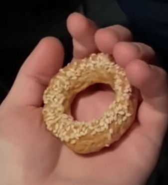 - Wet your hands, then take a dough ball and create a hole in the center. Slowly widen the hole and place the dough on an oven pan lined with baking paper