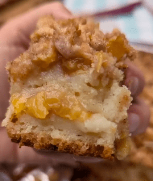 - Cut the peaches into cubes, and mix with the rest of the peach square ingredients. Keep to the side.