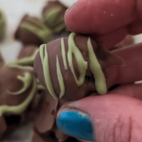 - In a microwave-safe bowl, melt the chocolate + coconut oil in 30-second pulses, stirring until smooth