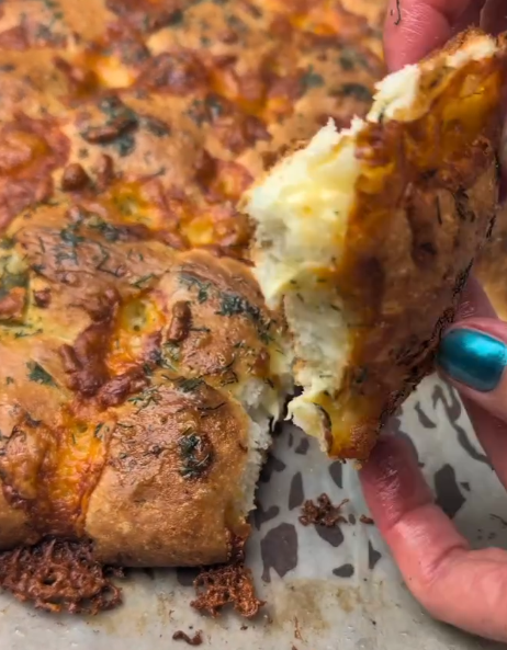 - Mix garlic butter and herbs, spread over dough, then press shredded mozzarella into the cuts