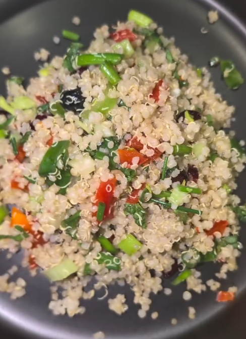 - Heat oil in a pan, lightly toast quinoa for 1-2 minutes