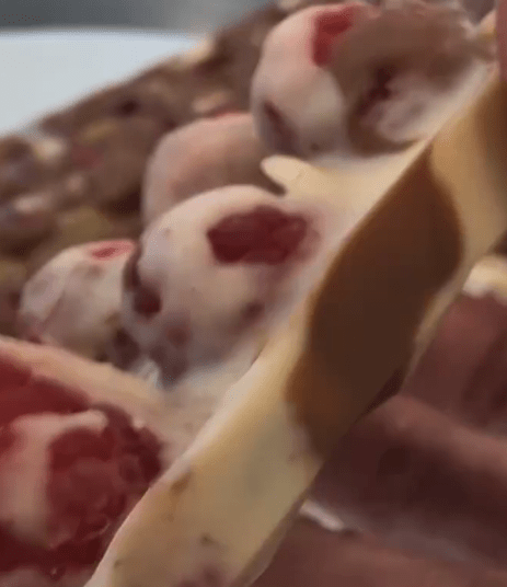 - Spread raspberries over a mold, then sprinkle granola and almonds